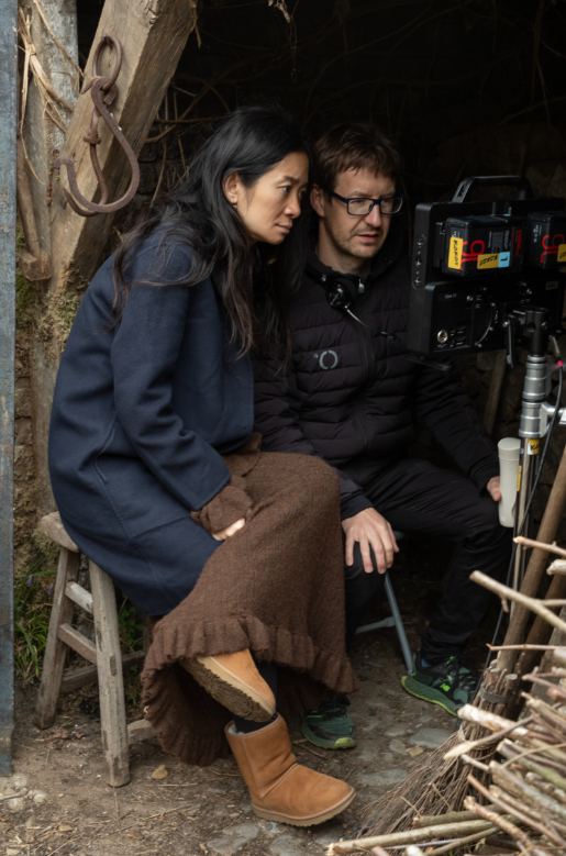 “Cinematographer Łukasz Żal, PSC (right) and director Chloé Zhao on the set of Hamnet.” – Źródło: American Cinematographer